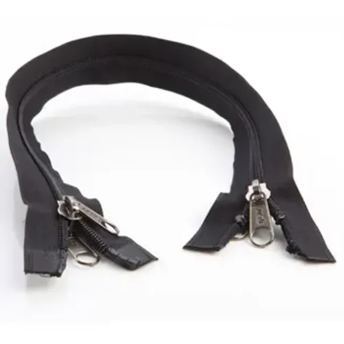 Then open the teeth and bend overlapping by go through slider became to a single double layer zipper chain tape, joint by slider became to double tape double teeth layer zipper.